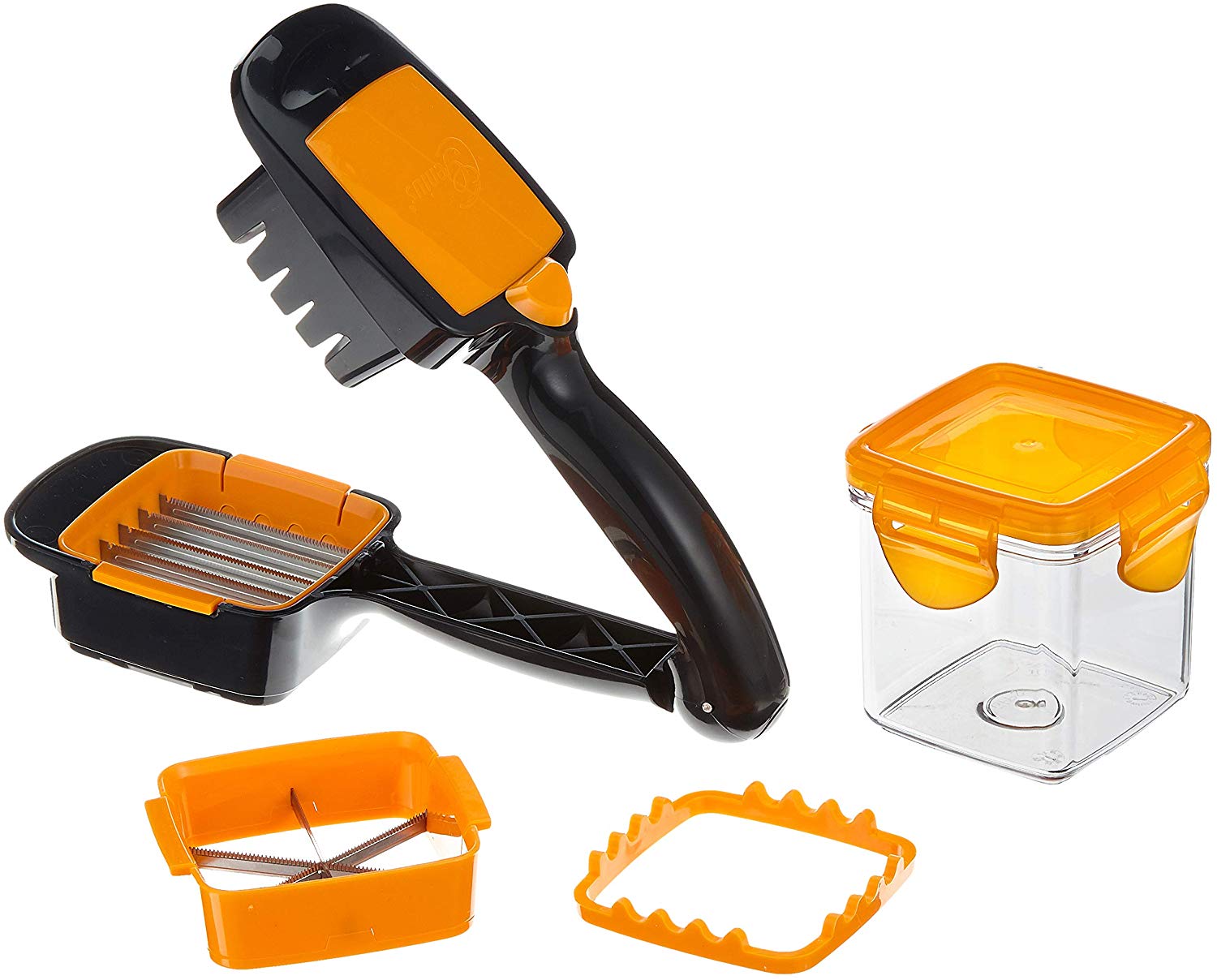 Genius Nicer Dicer 5 in 1 Pemotong Multifungsi: Alat Pemotong Cepat yang praktis dan premium, di desain khusus untuk memotong sayuran, buah-buahan dan Bumbu, seperti bawang merah, bawang putih dan lain-lain. Dengan alat ini anda dapat dengan mudah membuatnya menjadi potongan-potongan kecil yang akan sangat membantu di dapur.
