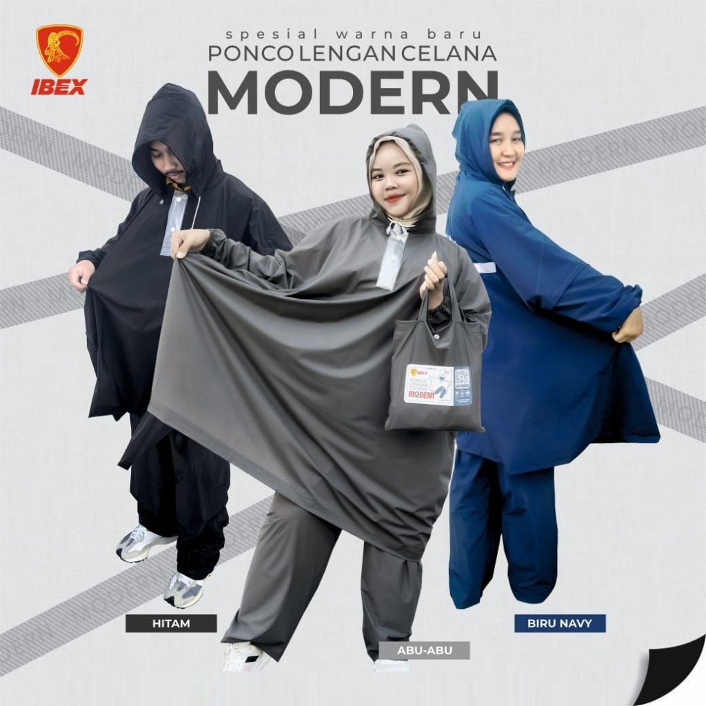 Jas Hujan IBEX Modern Ponco Lengan Setelan Celana